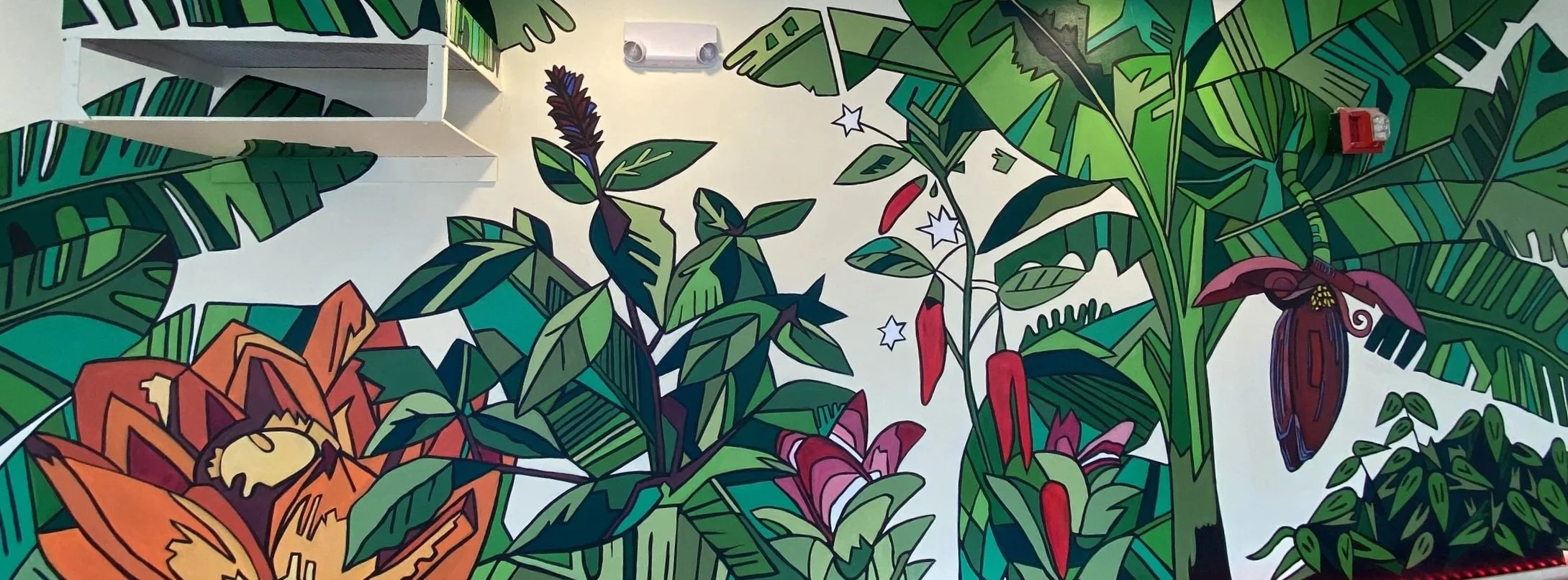 Interior work included full men’s and women’s bathroom remodels, all new flooring in the dining room, cabinets, casework, seating, and the painting of a mural in collaboration with a local artist. The kitchen floors were retouched and coated with epoxy and the layout was redesigned for more efficacy and space utilization.